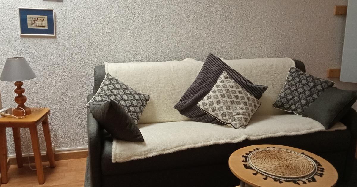 Grande baie vitrée double vitrage et volet roulant + balcon. Comprenant : 1 grande pièce à vivre avec canapé RAPIDO neuf en 160cm de large, coin TV,